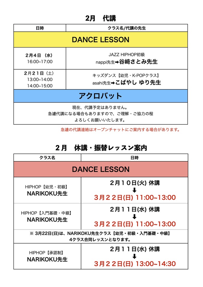体験・振替などで受講する際は、代講情報のご確認、LINEでお問い合わせお願いいたします🙇♀️