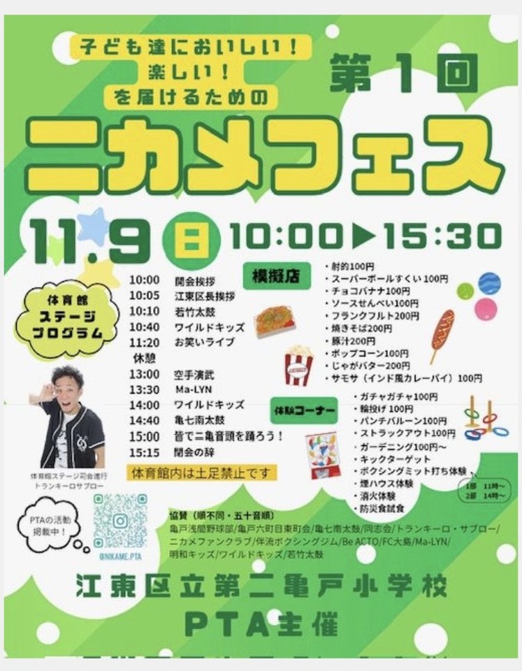 11月9日(日) 二亀小学校で行われる『ニカメフェス』